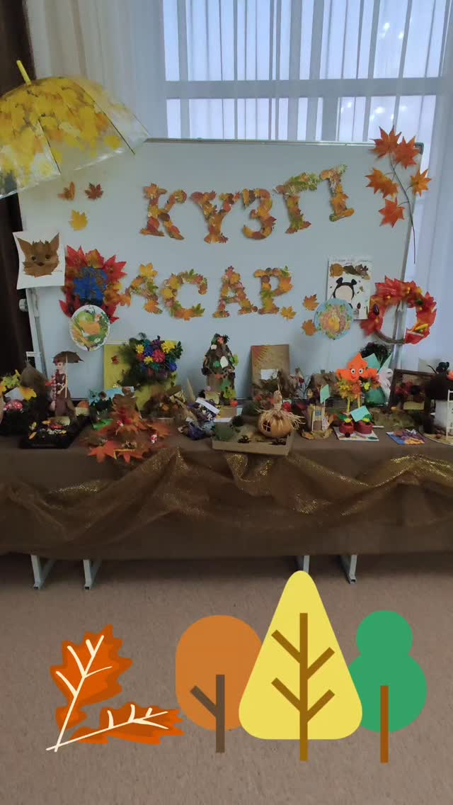 Балалар алтын күздің сұлулығын бейнелейтін табиғи материалдардан, суреттер мен композициялардан сүйіспеншілікпен және шабытпен қолөнер жасады.