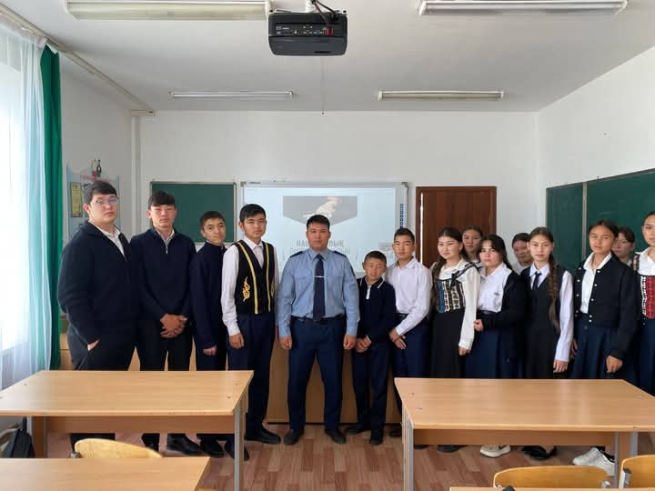 Полиция қызметкері аға лейтенант Е. Е. Тусупов жас ұрпаққа дұрыс бағыт беру – қоғамның тұрақтылығы мен қауіпсіздігінің негізі екенін атап өтті.