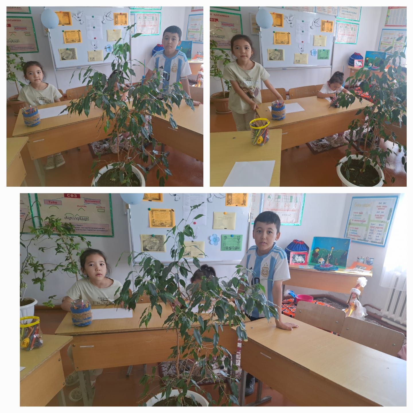 "Табиғатты аялап, өсімдіктерді қорғайық" атты тақырыбында Оқушылардың табиғатқа деген қызығушылығын ояту,табиғатты сүйе білуге үйрету, ұқыптылыққа, адамгершілікке тәрбиелеу мақсатында слайдпен жұмыс жасалып, оқушылар өздерінің үйдегі өсімдіктерді қалай күтім жасап жатқандары туралы айтып әңгімеледі. Сыныптарындағы, мектеп ауласындағы гүлдердің арам шөптерін жұлып, су құйды. Табиғат, өсімдіктер туралы жұмбақтар шешіп, ойындар ойнатылды.
