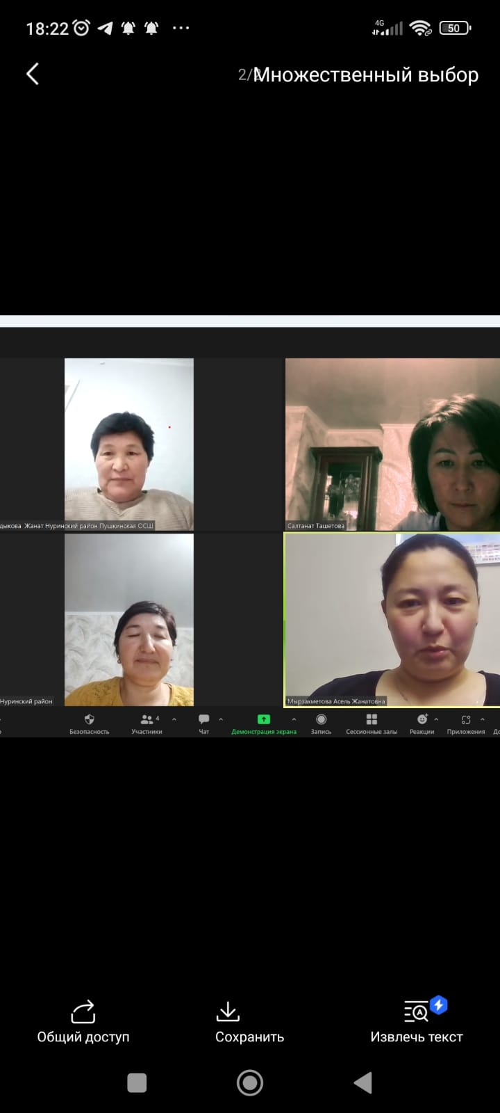30.10.23 ж. Пушкин НОМ -де " Біртұтас тәрбие бағдарламасы" тақырыбында ғылыми жоба онлайн кездесу өткізілді. Онлайн ҚАРМУ- нің тарих факультетінің оқытушысы педагогикалық ғылымның докторы Мырзахметова Асель Жанатовнамен өтті. Онлайн кездесу барысында ғылыми жобаның проблемалық мәселелері, себептері шешу жолдары талқыланды.