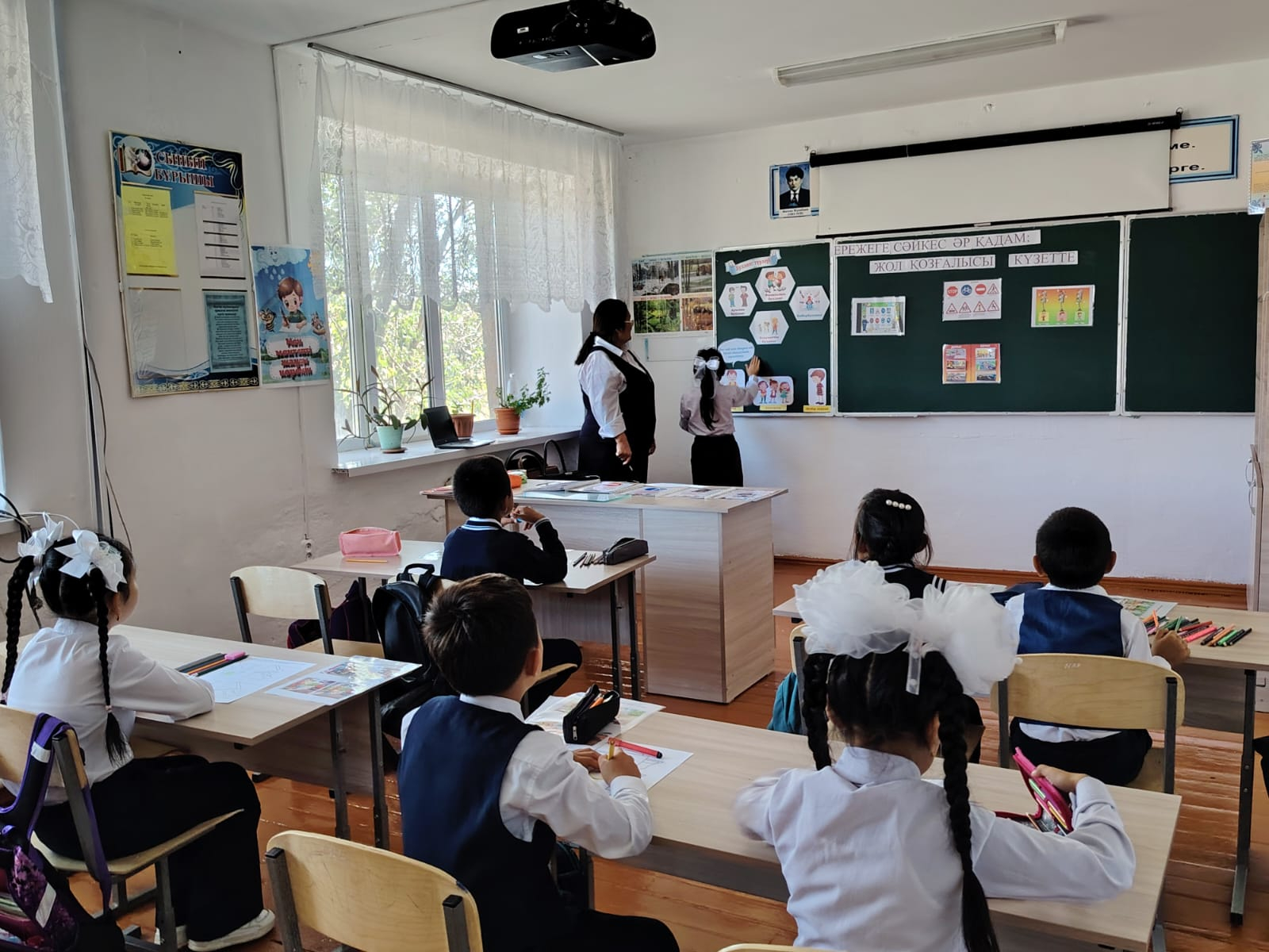 " Ережеге сәйкес әр қадам: жол қозғалысы ережесі күзетте!" тақырыбында жол қозғалысы ережесі бойынша сынып сағаты өткізілді. Мақсаты- қарапайым жолда жүру ережелерін естеріне сақтау.