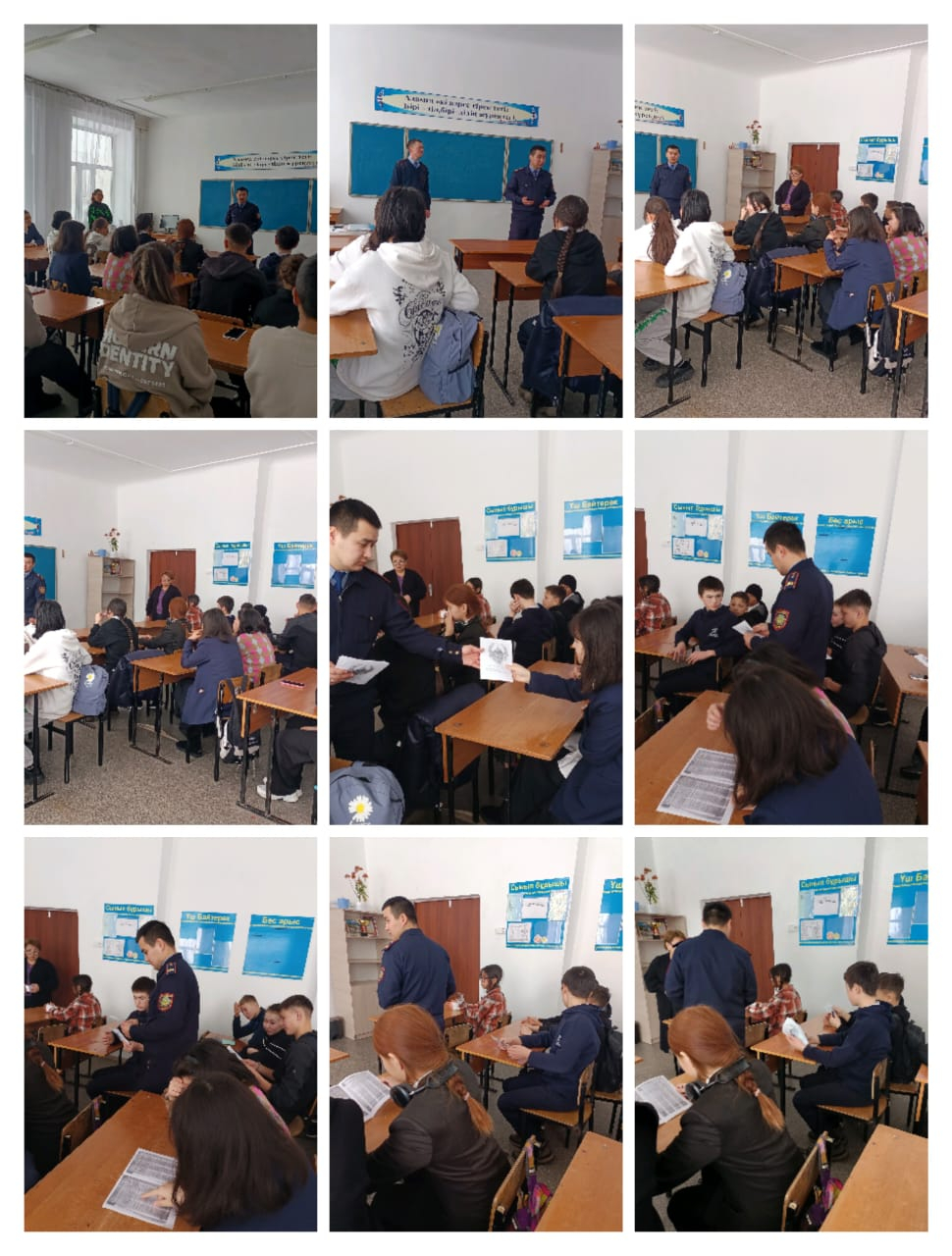 Мектебімізде "Құқықтық навигатор" құқықтық сауаттылық апталығында құқықтық кеңес беру "Мамандардан сұраңыз" тақырыбында кәмелетке толмағандар ісі жөніндегі инспекторы полиция лейтенанты Романкулов Р.Б. кәмелетке толмағандар арасындағы құқық бұзушылықтың, зорлық -зомбылықтың, қорлаудың, қудалаудың, балалар ортасында мектептегі атыстардың алдын-алу туралы түсінік қалыптастыру мақсатында 7-10 сынып оқушылары арасында "Әкімшілік құқық бұзушылық", "Қылмыстық құқық бұзушылық" ,"Бұзақылық" , "Жыныстық қол сұғылмаушылық" тақырыптарында дәріс оқыды. Оқушылар өздерін толғандырып жүрген сұрақтарын қойып маманнан кеңес алды.