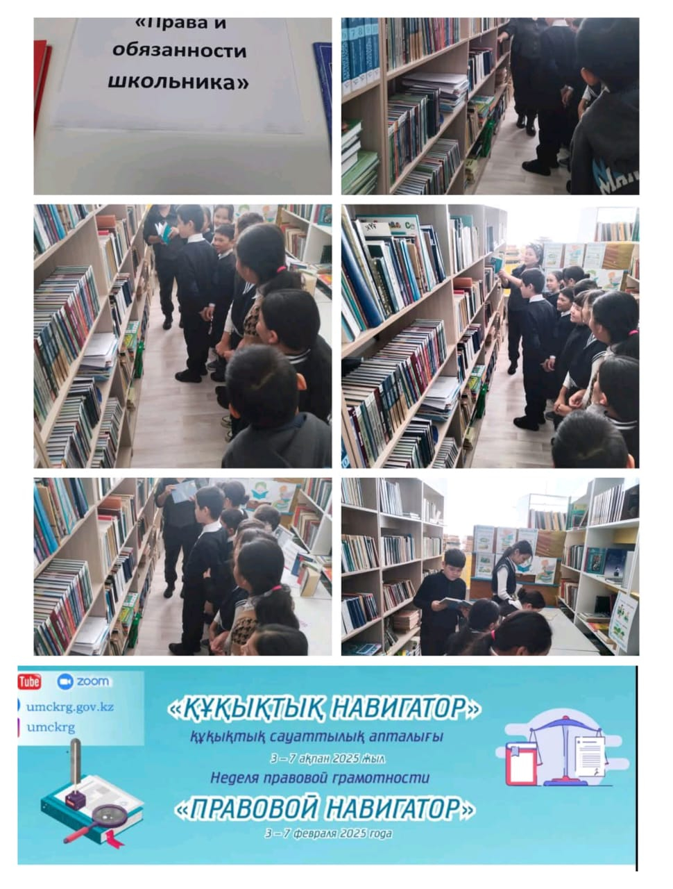 'Құқықтық навигатор" құқықтық сауаттылық апталығының жоспарына сәйкес "Оқушының құқықтары мен міндеттері" тақырыбында кітап көрмесі өтті.
