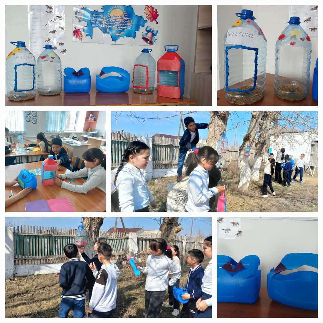 Жаратылыстану- ғылыми апталығының үшінші күні 4 сынып оқушылары мен"Жас инженер " іс-шарасы тақырыбында "Құстарға жемсалғыш" жасау акциясын өткізді.