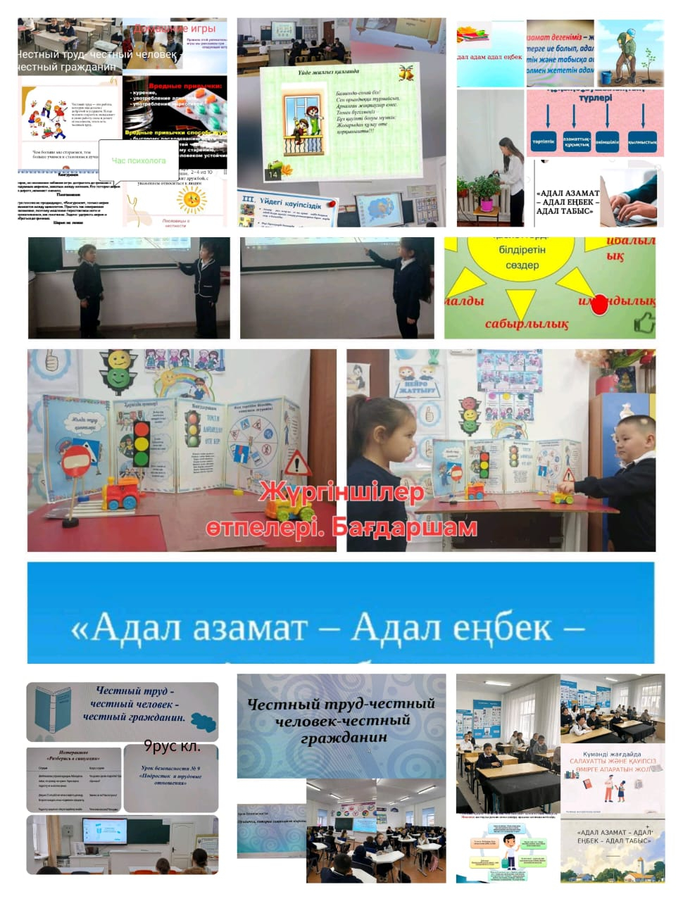 "Адал азамат-адал еңбек-адал табыс" атты тақырыпта барлық сыныптарда сынып сағаты және қауіпсіздік сабағы өткізілді.