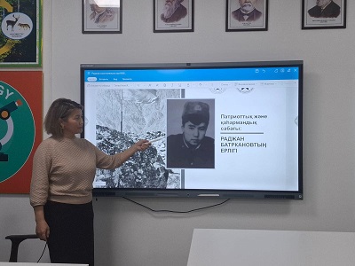 Бүгін Р.Асубаев ЖББ мектебінде "Р. Батырканов пен Р.Зәкиевтің ерлігі " тақырыбында сынып сағаты өтті. Мақсаты: Раджан Батырканов пен Руслан Зәкиевтің ерлігінің тарихымен таныстыру.Отанға қызмет етудегі батырлық пен патриотизмнің маңызын талқылау.Ел үшін мақтаныш сезімін және Отан қорғаушыларды құрметтеуді тәрбиелеу. Тарихи оқиғаларды талдау қабілеттерін дамыту.Оқушылар сұрақтарға жауап беріп, Отан қорғаушылардың ерлігі жайында эссе жазды