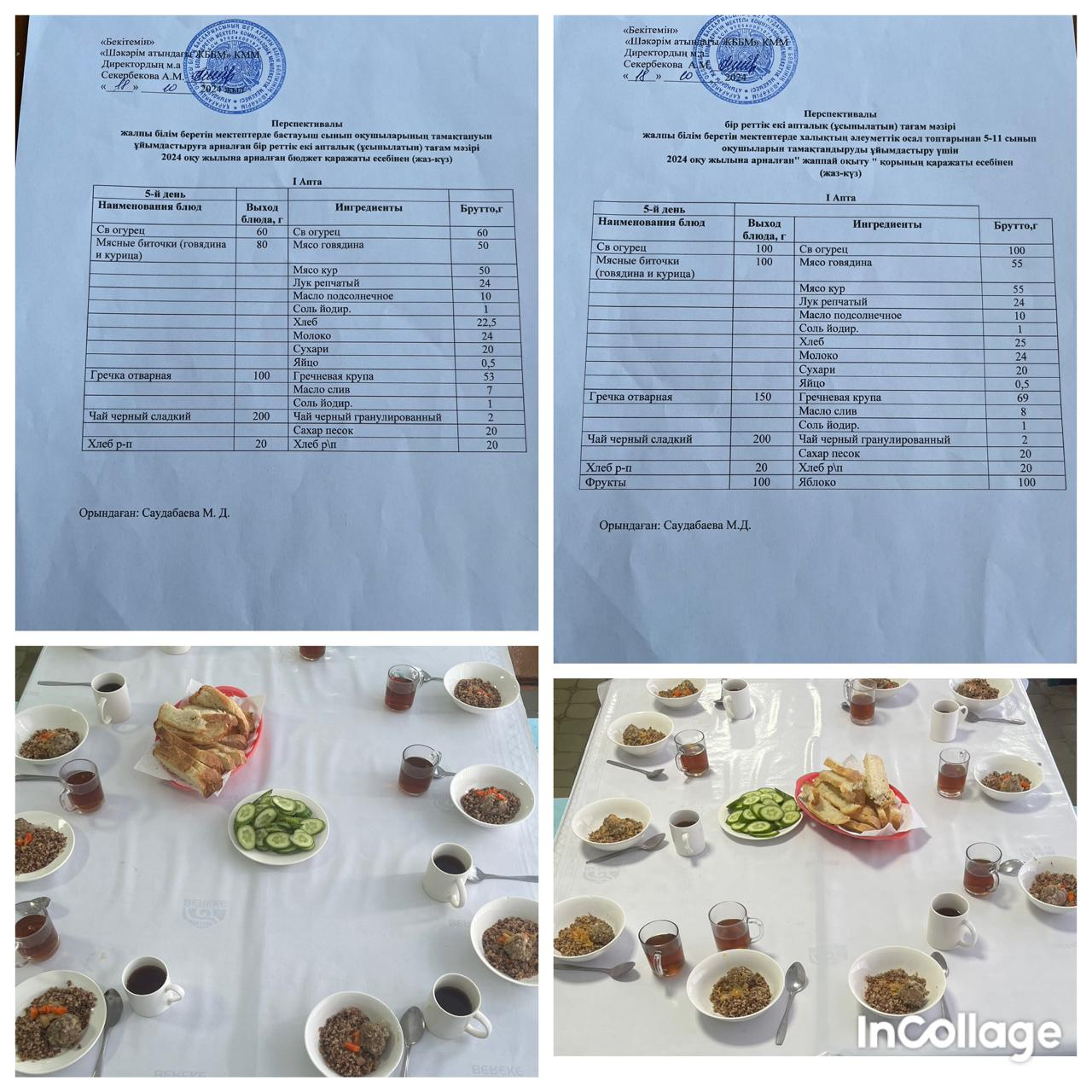 "Шәкәрім атындағы ЖББМ" КММ 18.10.2024ж оқушылардың тамақтануы