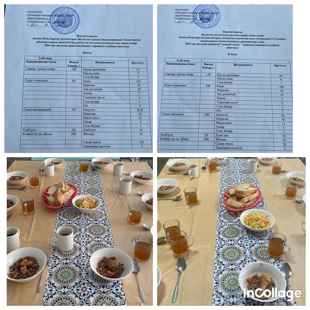 "Шәкәрім атындағы ЖББМ" КММ 22.10.2024ж оқушылардың тамақтануы
