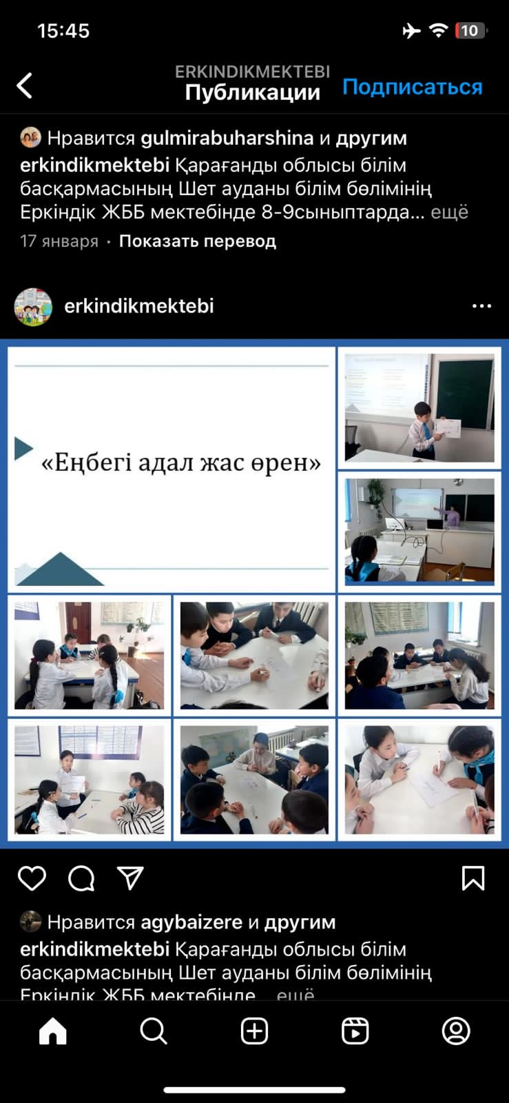 Қарағанды облысы білім басқармасының Шет ауданы білім бөлімінің Еркіндік ЖББ мектебінде