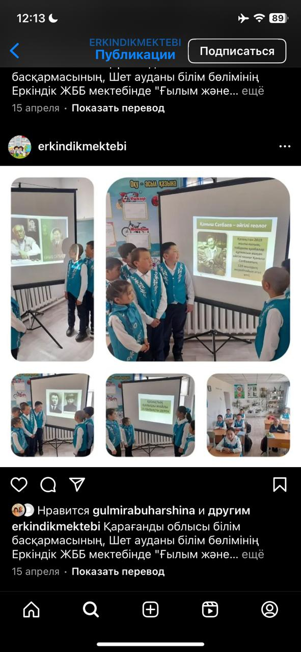 Қарағанды облысы білім басқармасының, Шет ауданы білім бөлімінің Еркіндік ЖББ мектебінде "Ғылым және технология" жаратылыстану- ғылыми сауаттылық апталығында "Сәтпаевтың өмірі мен еңбек жолдары" атты тәрбие сағаты 4-сынып оқушыларында өткізілді.