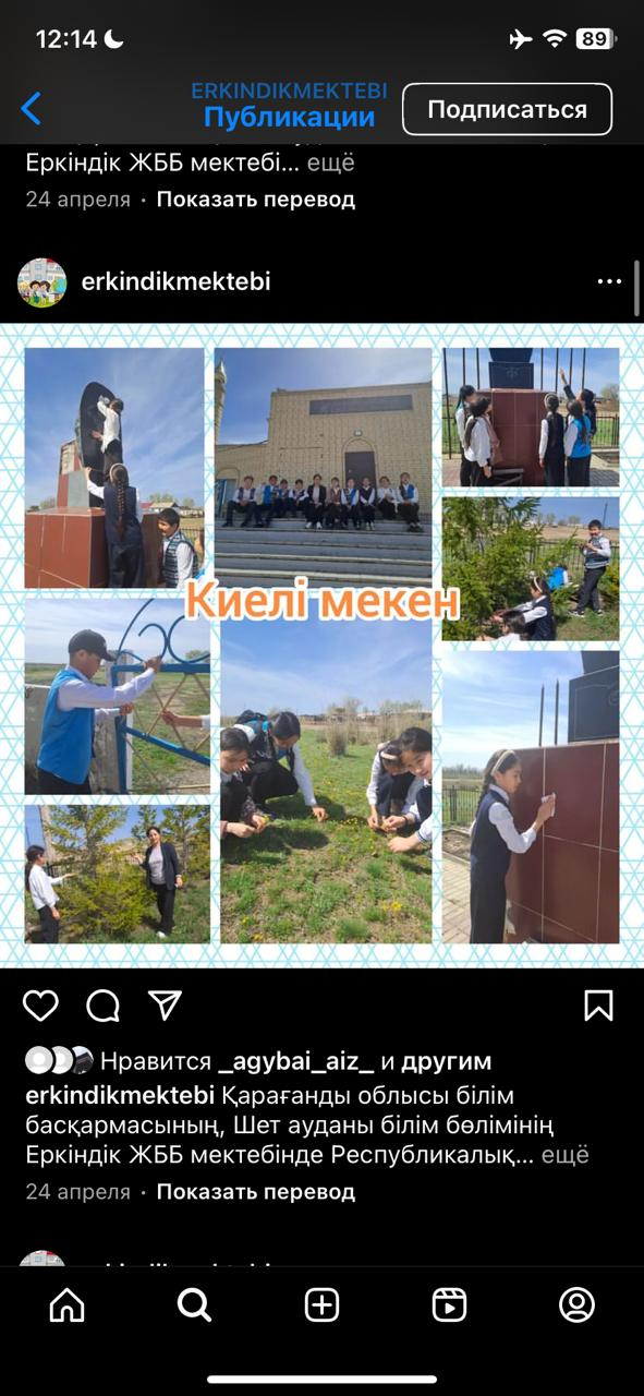 Қарағанды облысы білім басқармасының, Шет ауданы білім бөлімінің Еркіндік ЖББ мектебінде Республикалық "Таза Қазақстан " экологиялық акциясы аясында "Киелі мекен" тақырыбында ауыл ішінде орналасқан ескерткіштер маңайын тазарту жұмыстары жүргізілді.