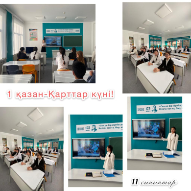 1-қазан Қарттар күніне орай 1-11 сыныптар арасында "Қарттарын қадірлеген-ел ардақты" атты тәрбие сағаттары ұйымдастырылды.Тәрбие сағатының мақсаты:қарт-қарияларды құрметтеуге,қадірлеуге үйрету.Үлкенді сыйлап қызмет ету керек екенін түсіндіру.