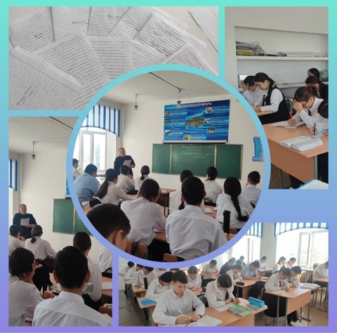 "Функционалды сауаттылык - тулга калыптастырудын жана жолы" аясында 9А сыныбы арасында "Улттык ойын - улт казынасы" такырыбында диктант жазды.