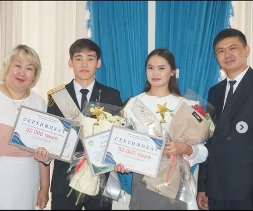 2024-2025 оқу жылының нәтижесі бойынша мектеп түлектері Алпысбай Батырхан мен Нұрғали Алтынайды «Алтын белгі» төсбелгісі мен «Алғыс хат» қосымша 50000 тг құрайтын сертификат пен атаулы кубокпен Шет ауданының білім бөлімінің басшысы Абенова Раушан Бекайдаровна марапаттады.