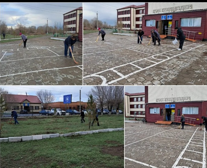 "Таза Қазақстан" республикалық акциясы аясында "Таза бейсенбі" шарасы барысында мектеп ауласында санитарлық-тазалық жұмыстары ұйымдастырылды.