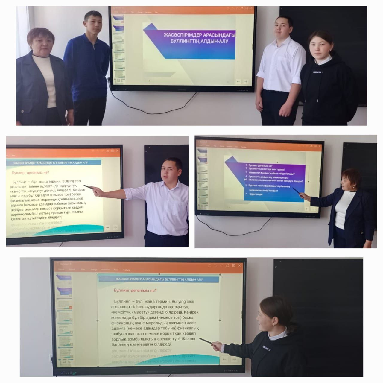 16 қыркүйекте10 қазақ сыныбында "Жасөспірімдер арасындағы буллингтің алдын алу" тақырыбында сынып сағаты өткізілді.