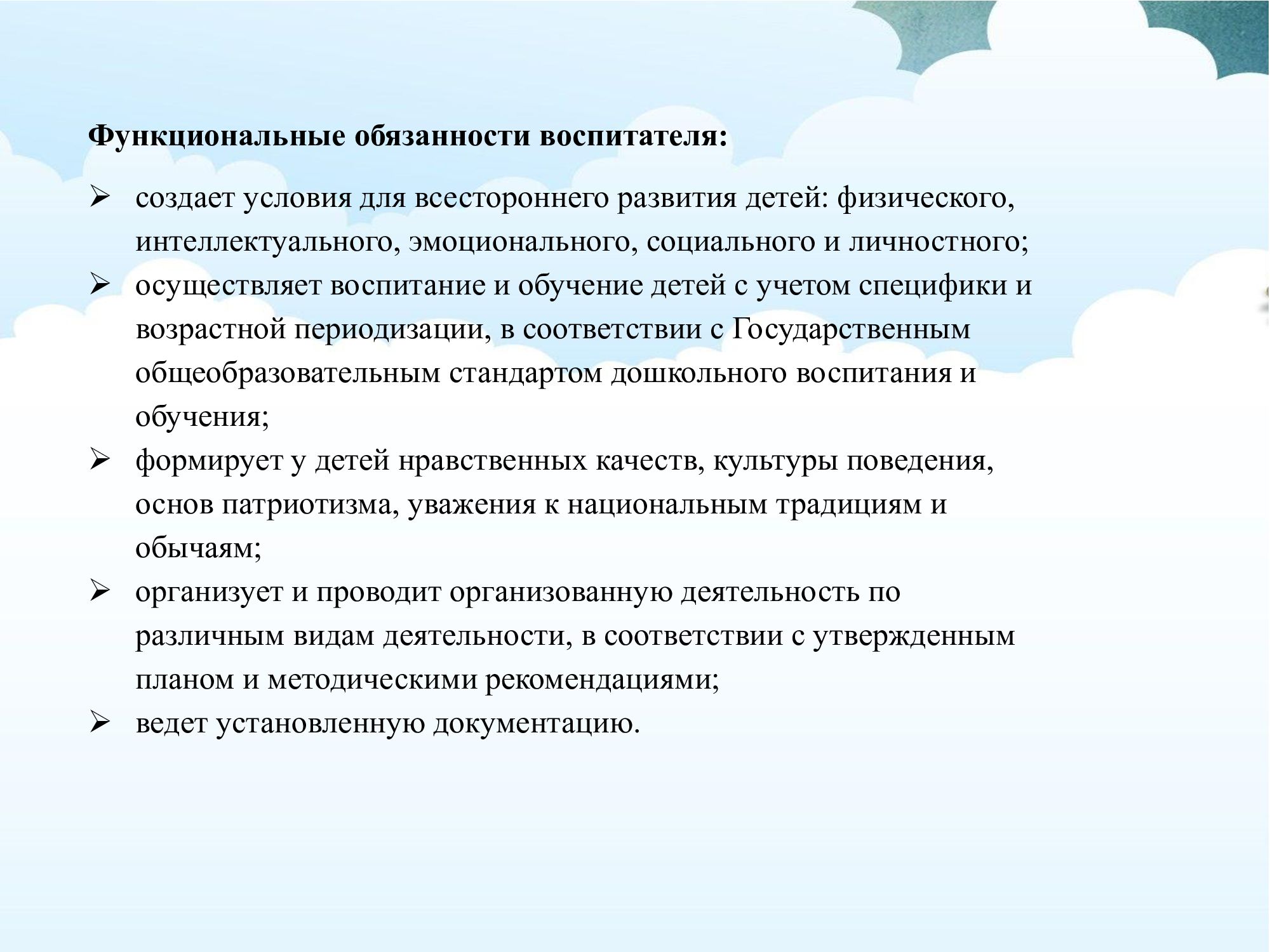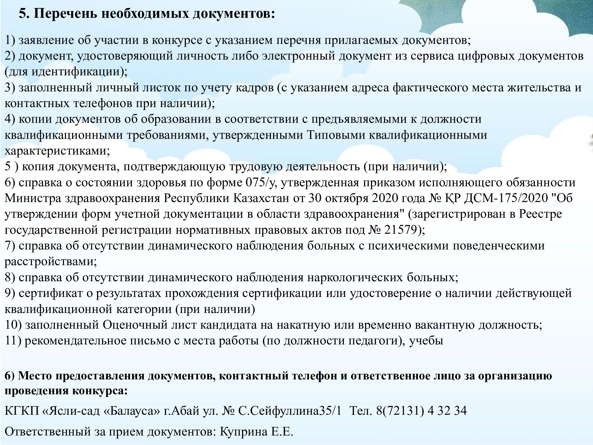 Конкурс на занятие вакантных должностей педагогов государственной организации образования: - Воспитатель с русским языком обучения – 2 вакансии (1 вакансия на время декретного отпуска);