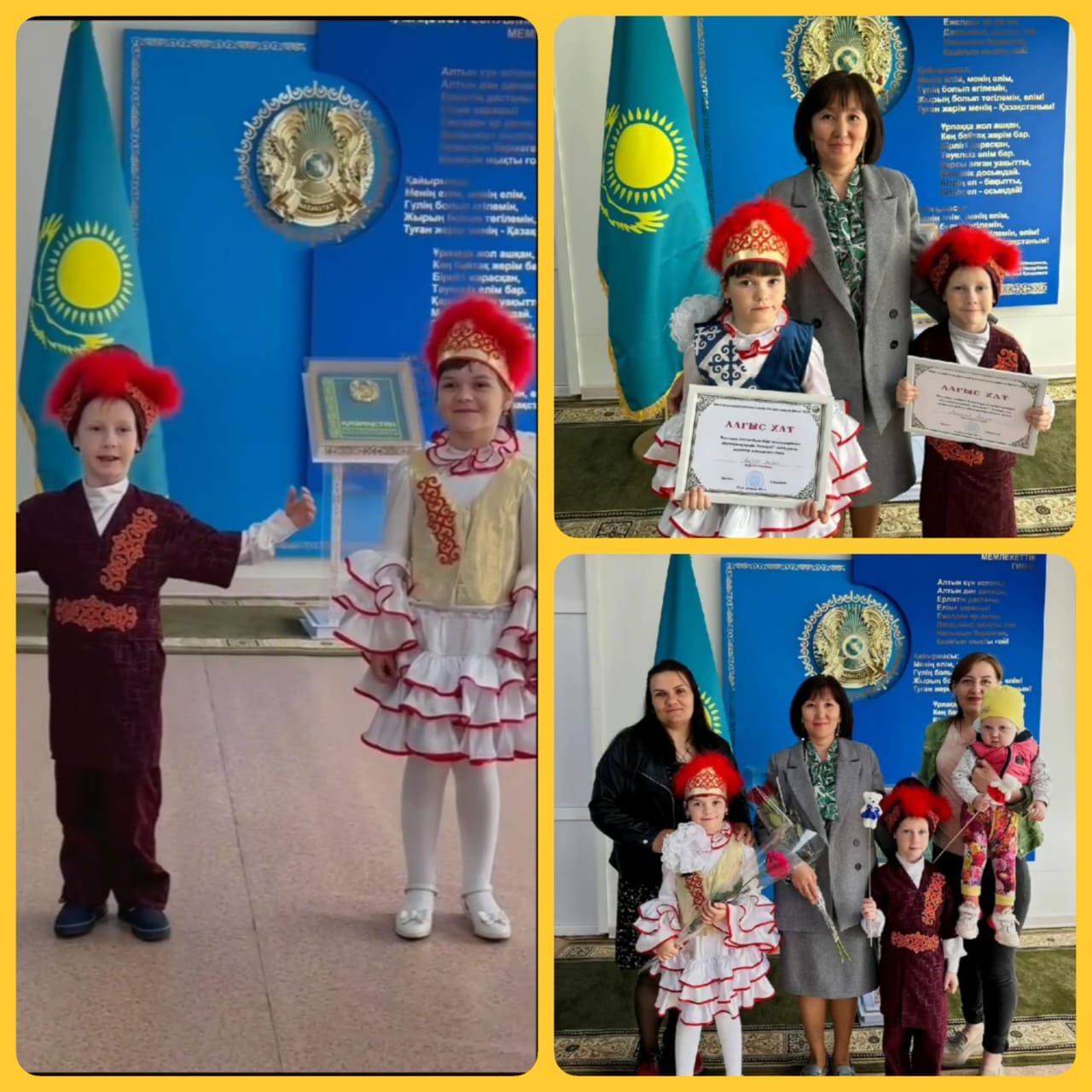 "Күншуақ" мектепалды даярлық тобының тәрбиеленушілері Лифар Ульяна мен Михайлов Артём мектепке дейінгі білім беретін мекемелерде өзге ұлт өкілдері арасында өтетін дәстүрлі "Қазақшаң қалай, балақай?" байқауына қатысып, алғыс хаттармен марапатталды.
