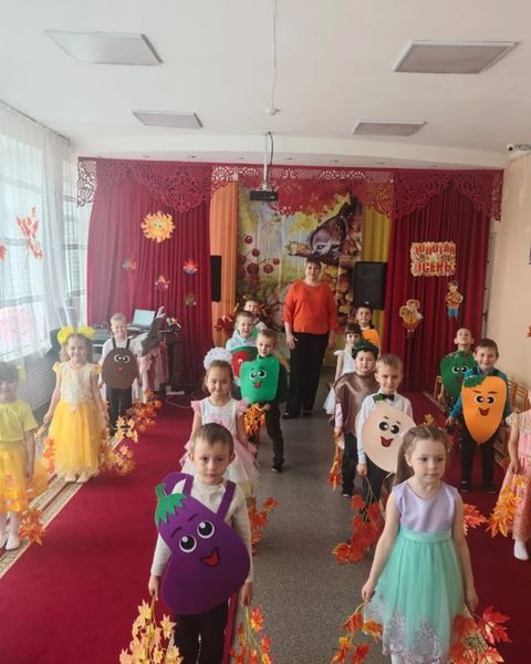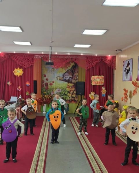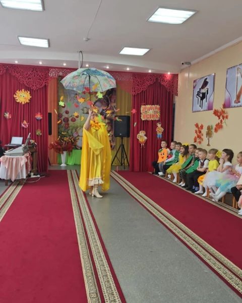 В зале повсюду словно в лесу, расположились осенние, разноцветные листья. Вся обстановка очень напоминала осенний лес, а звуки лесной мелодии, еще более усиливали это впечатление. Воспитанники ясли-сада читали стихи, пели песни, играли, танцевали.