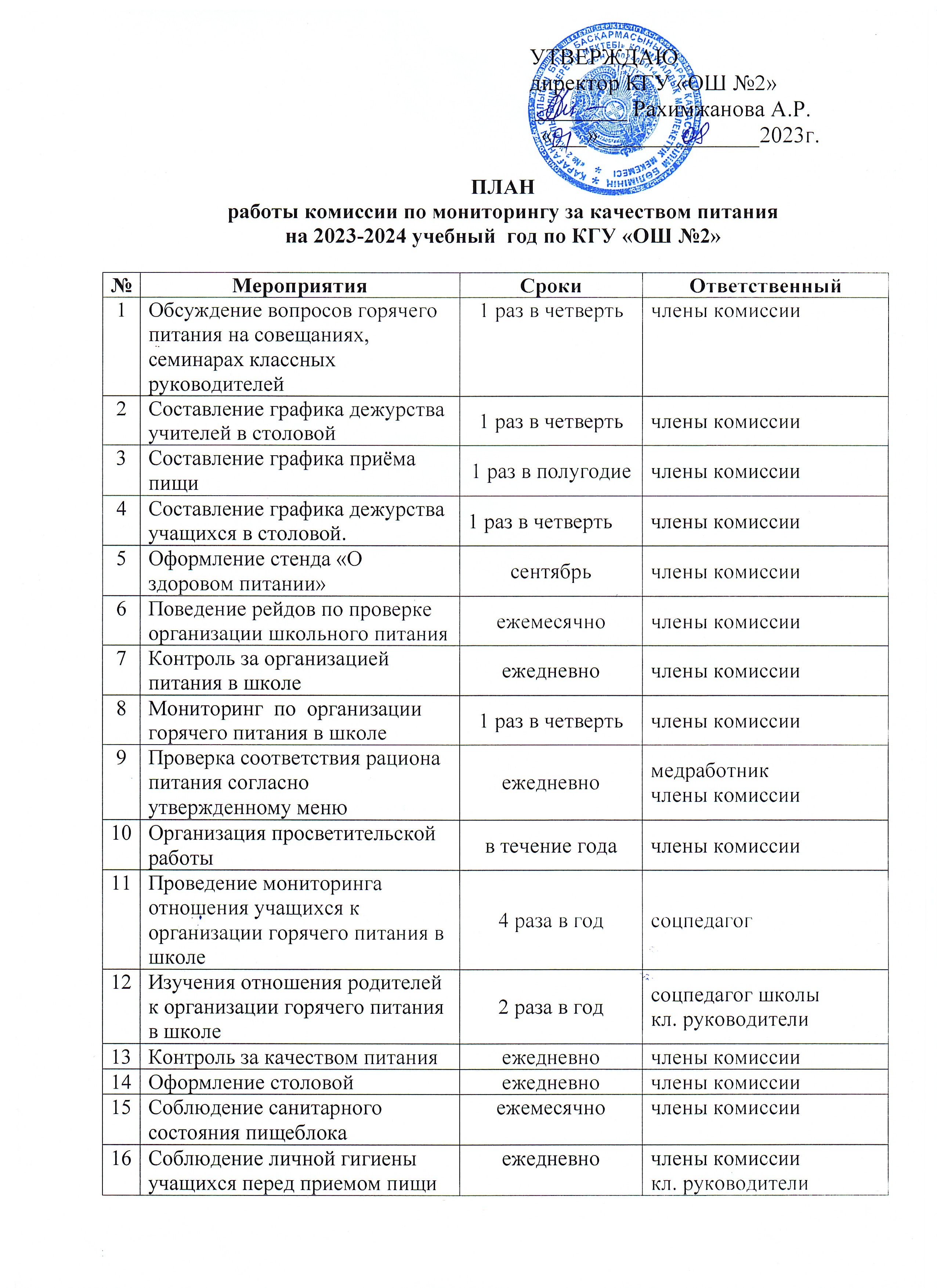 Положение о работе комиссии по мониторингу качества питания учащихся