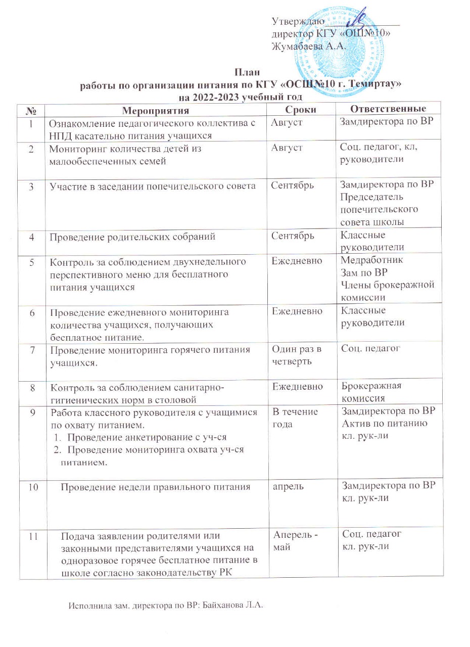 План работы по организации школьного питанияна 2022-2023 учебный год |