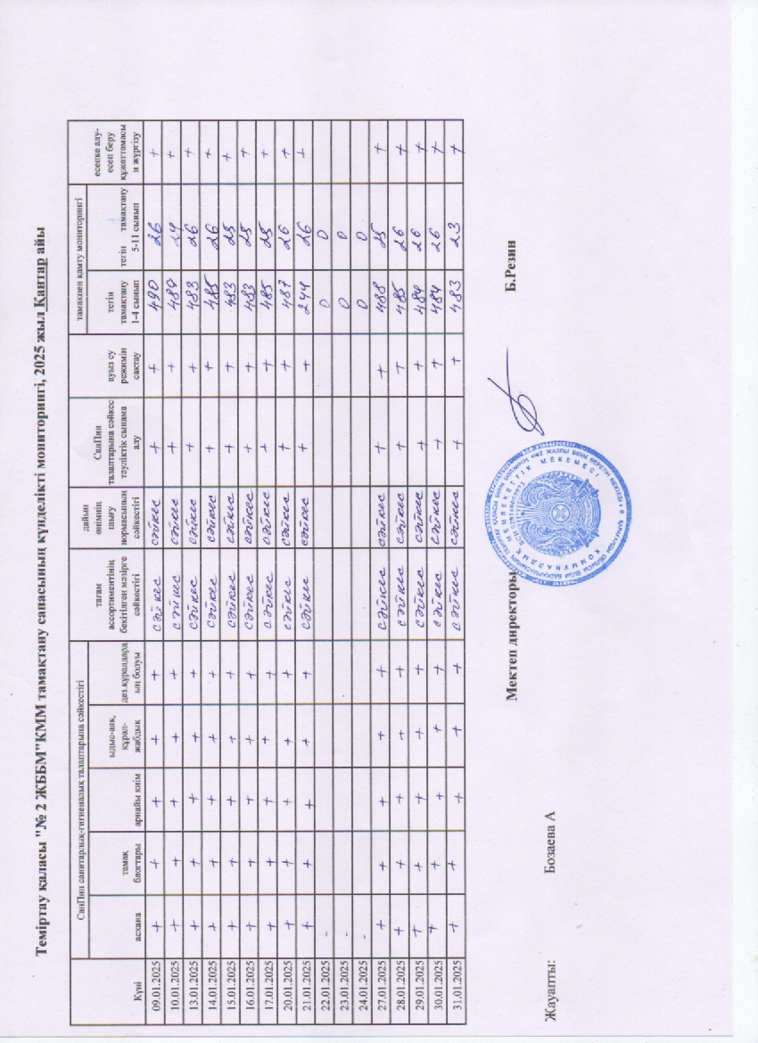 Тамақтану сапасына мониторинг жүргізу актісі. Қантар айы |