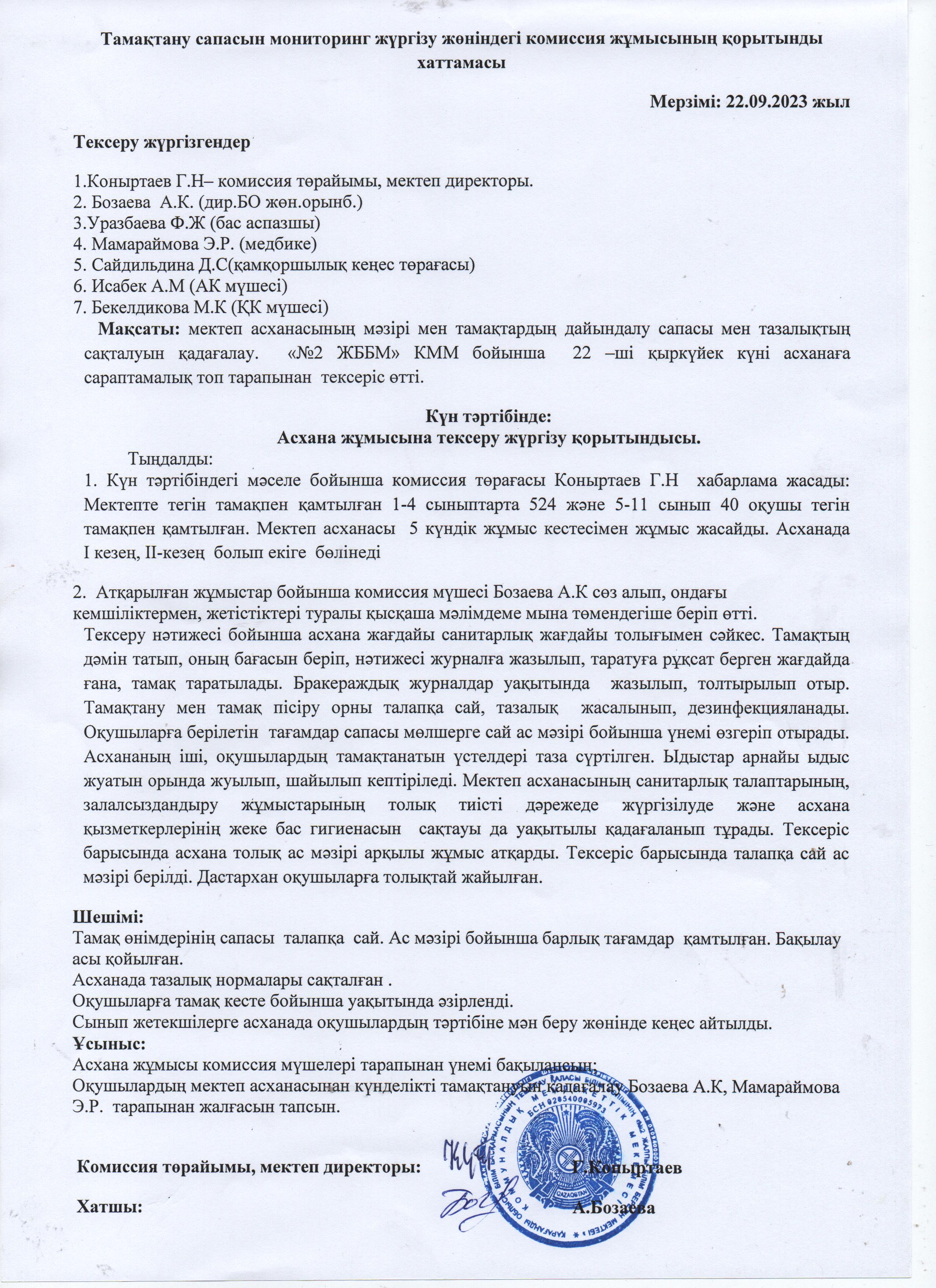 Протокол контроля качества питания на сентябрь месяцИтоговый протокол работы комиссии по контролю качества питания. |