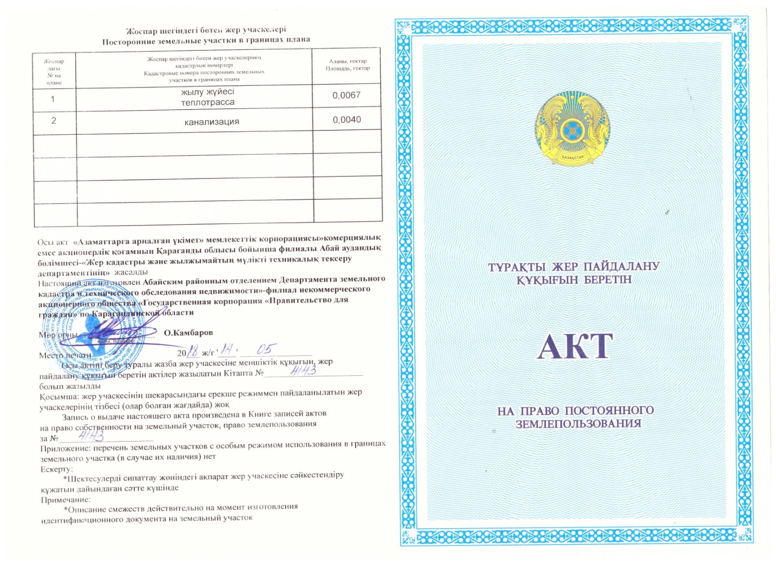 Акт землепользованияАкт землепользования |