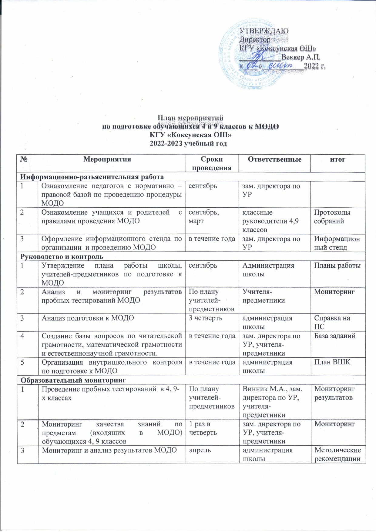 Мероприятия по подготовке к МОДО