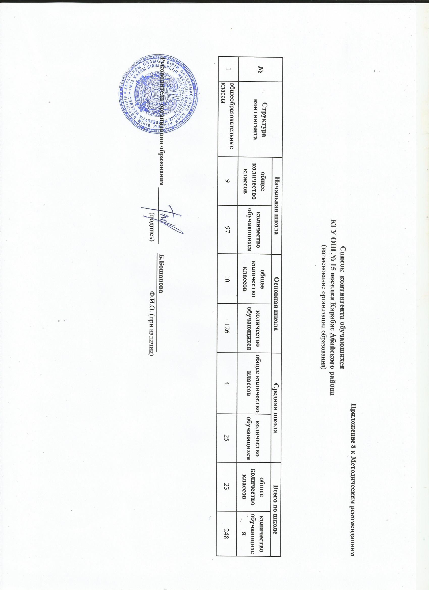 Список контингента школы на 2023-2024 учебный годКГУ ОШ № 15 поселка Карабас Абайского района |