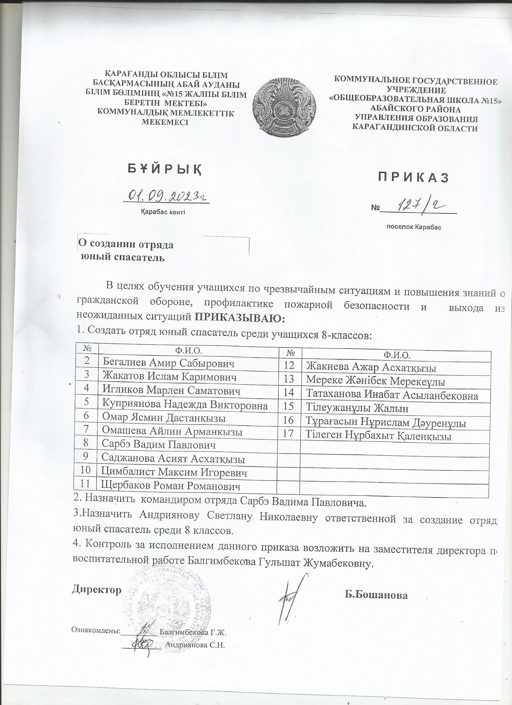 Приказ 2023-2024 годО создании отряда юный спасатель |