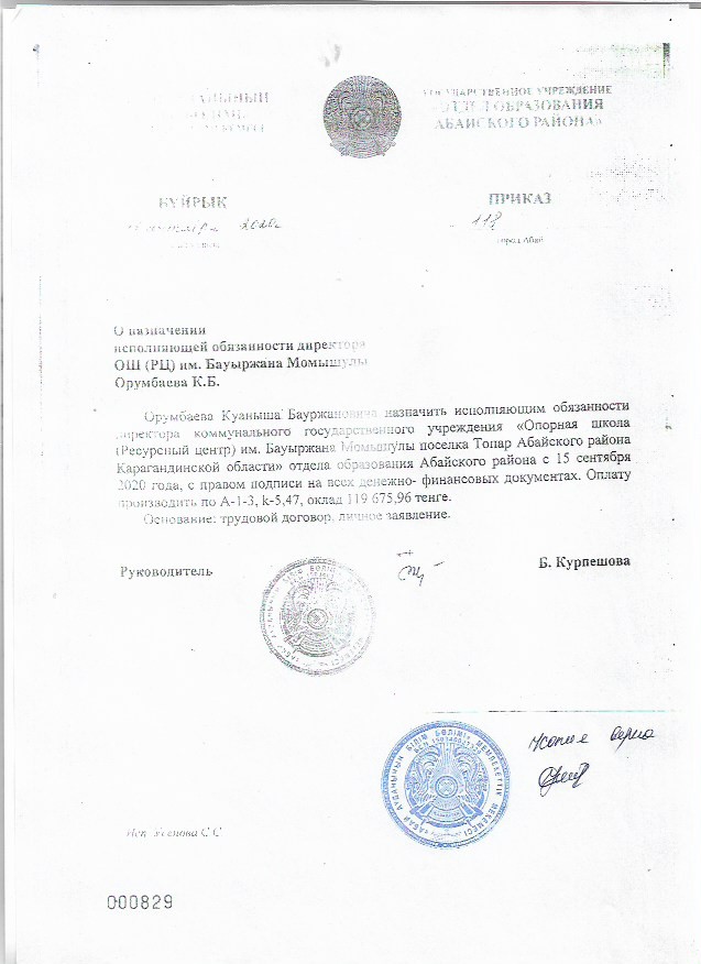 Организации> Қарағанды облысы білім басқармасының Абай ауданы білім бөлімінің "Бауржан Момышұлы атындағы тірек мектебі (ресурстық орталық)" коммуналдық мемлекеттік мекемесі