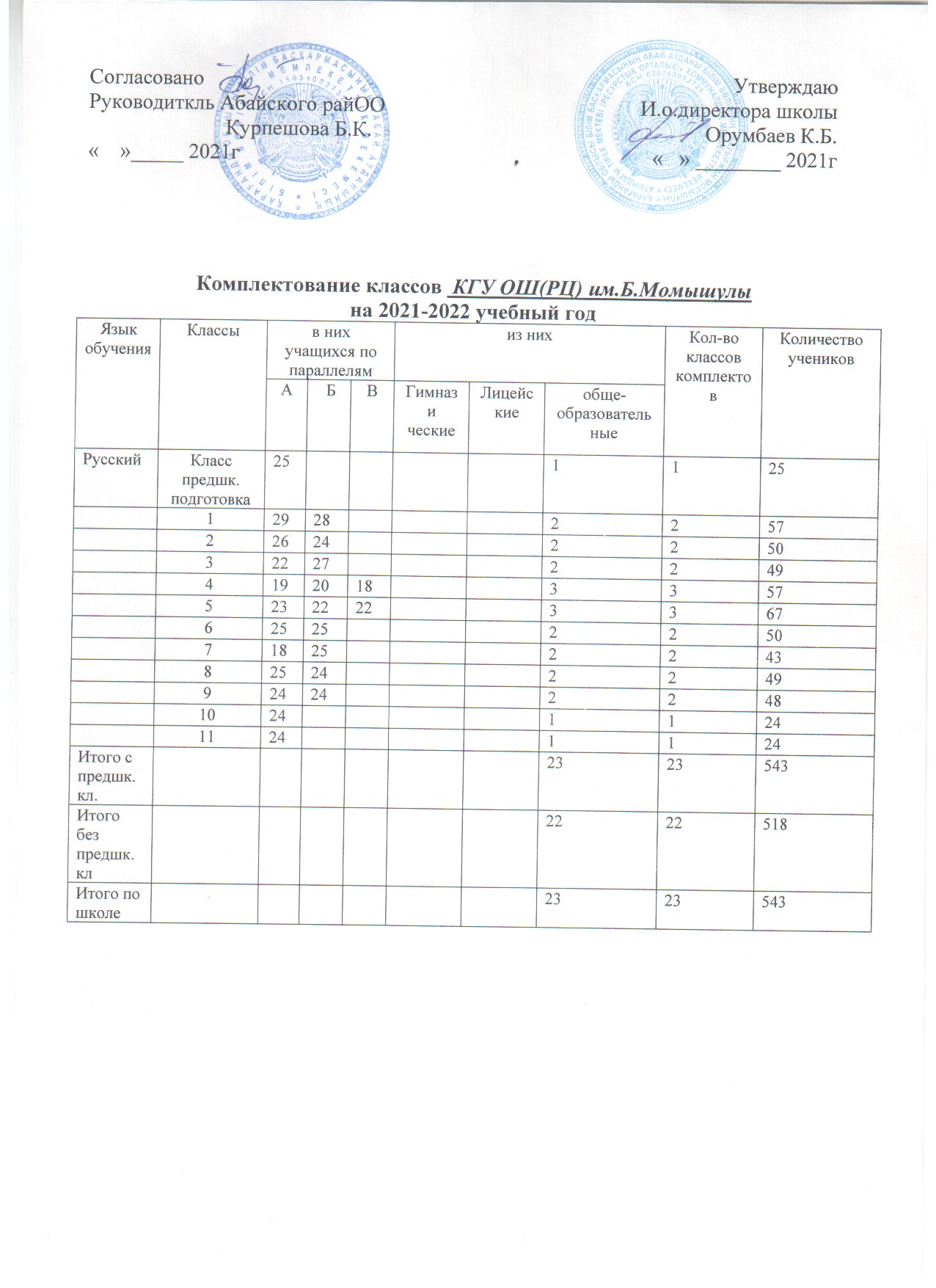 Комплектование классов 2021-2022уч.год. |