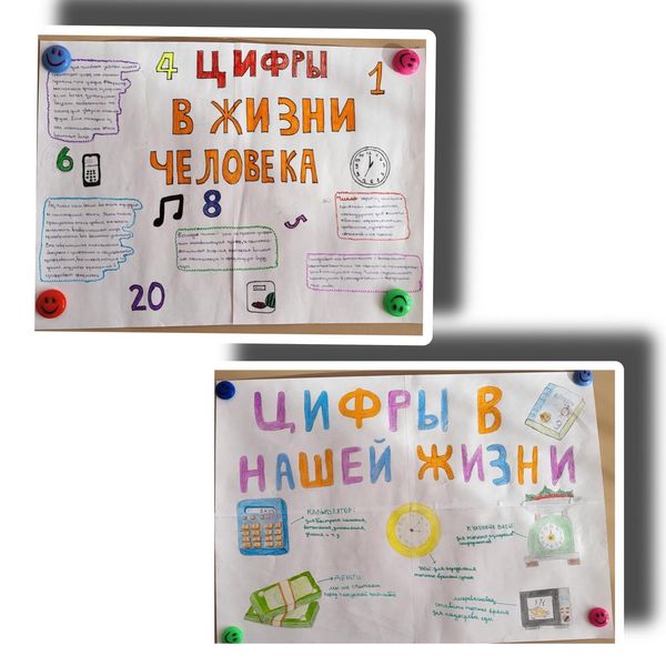 Учащиеся приняли активное участие, красочно оформив свои работы, проявили смекалку, креативность и талант. Дети с интересом проводили параллельно математики и повседневной жизни.