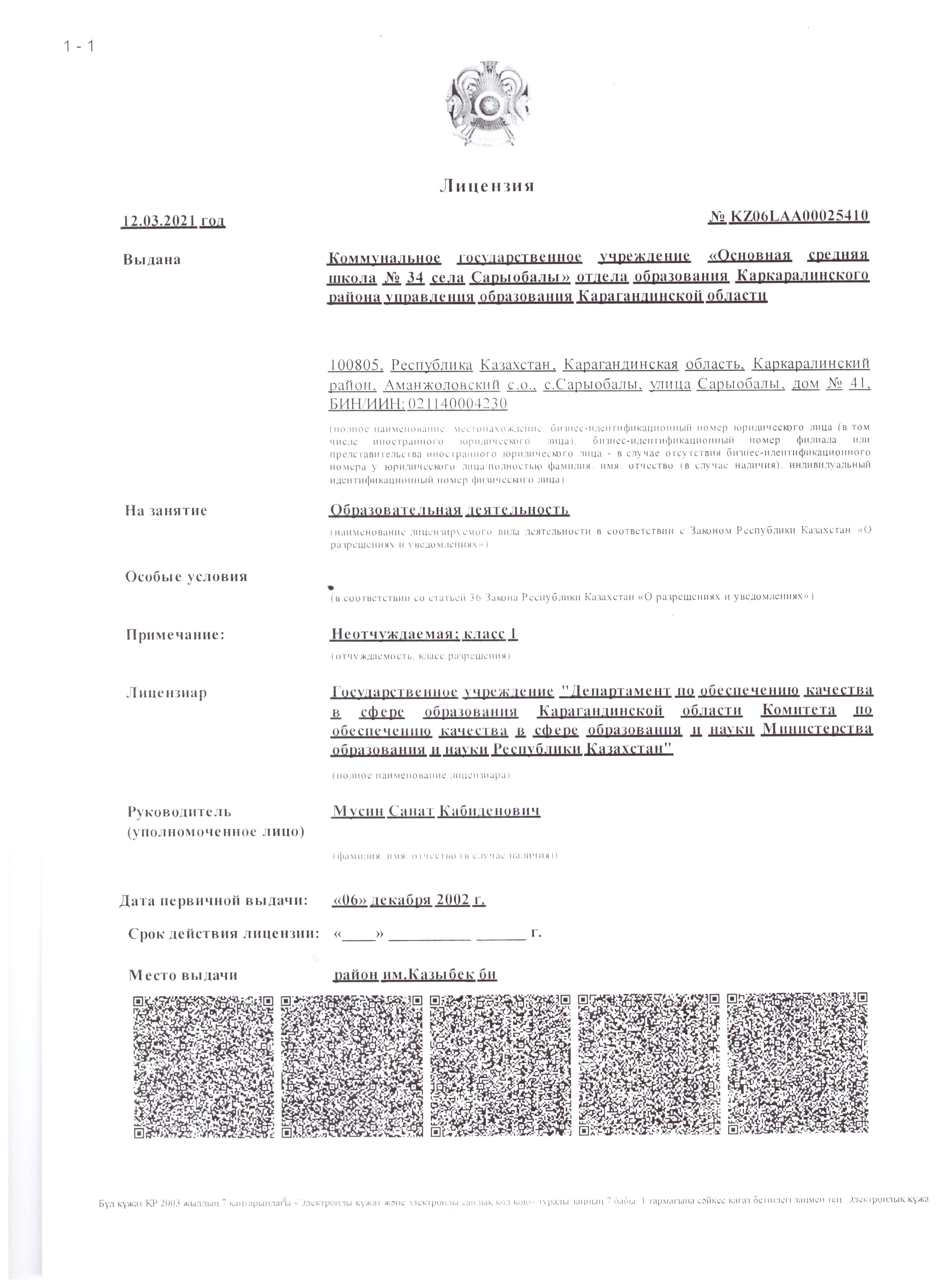 Дәреже: Лицензия