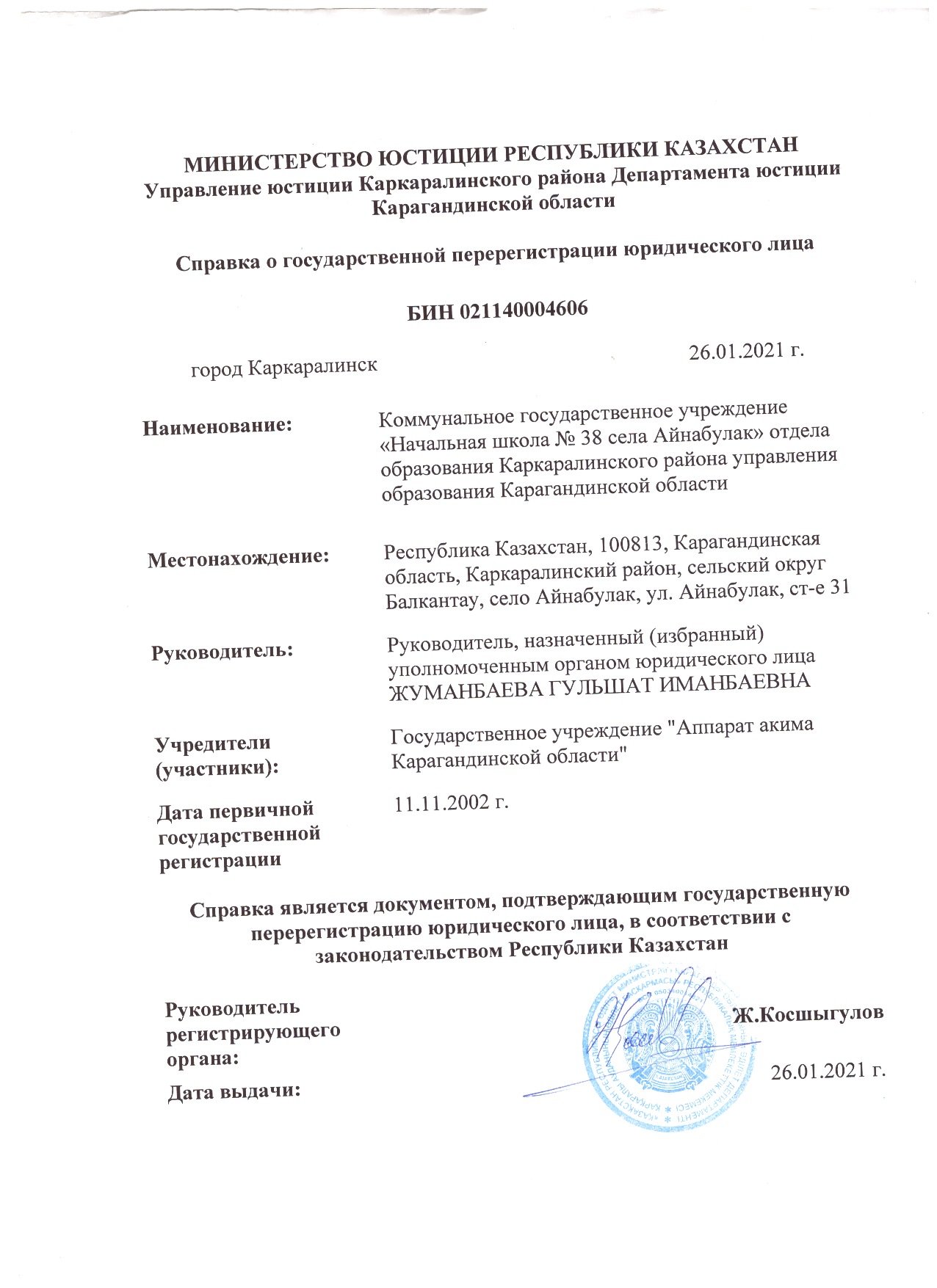 КГУ «Начальная школа №38 села Айнабулак"