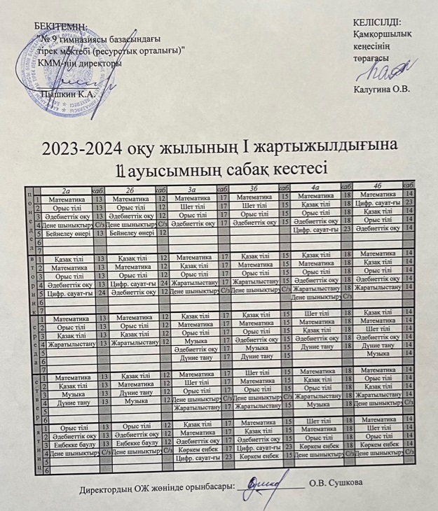 Расписание уроков 2 смены на 1 полугодие 2023-2024 учебного года.каз