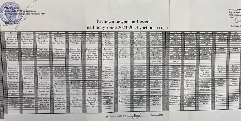 Расписание уроков 1 смены на 1 полугодие 2023-2024 учебного года.рус