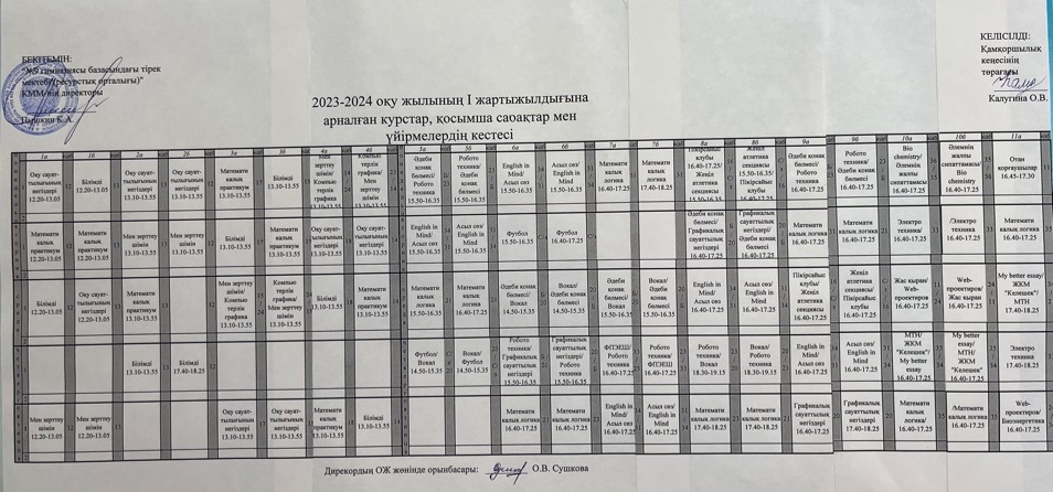 Расписание кружков, курсов и факультативов на 1 полугодие 2023-2024 учебного года.каз