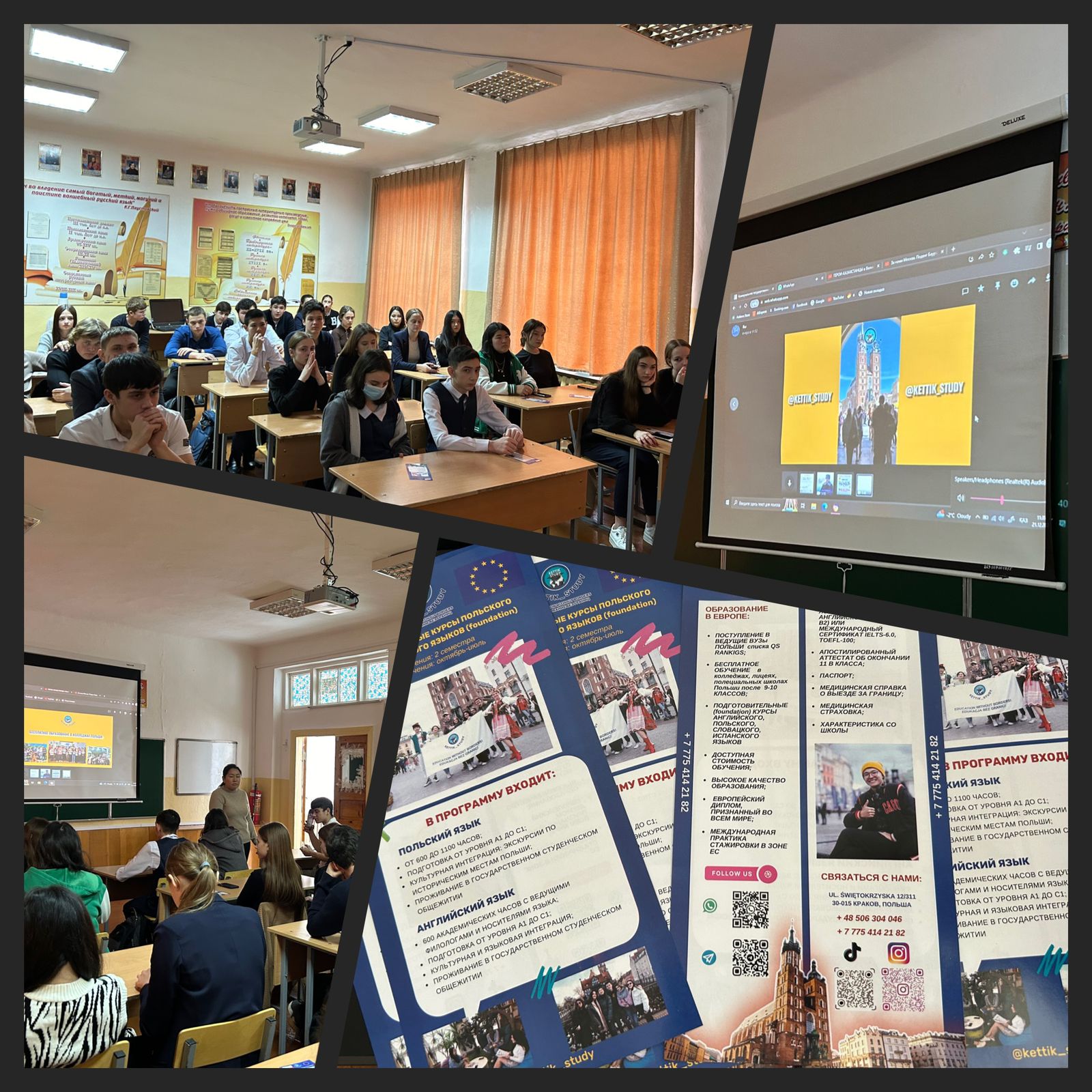 Профориентационная работа представителями “Кеttik study”В КГУ «Опорная школа (ресурсный центр) на базе гимназии №9» , была проведена профориентационная работа представителями “Кеttik study” с учащимися старших классов .Компания “Kettik stydy “ это официальный партнер ряда университетов и колледжей Польши , Словакии , Испании. Где рассказали о образовании в Европе, условиях поступления , трудоустройстве.