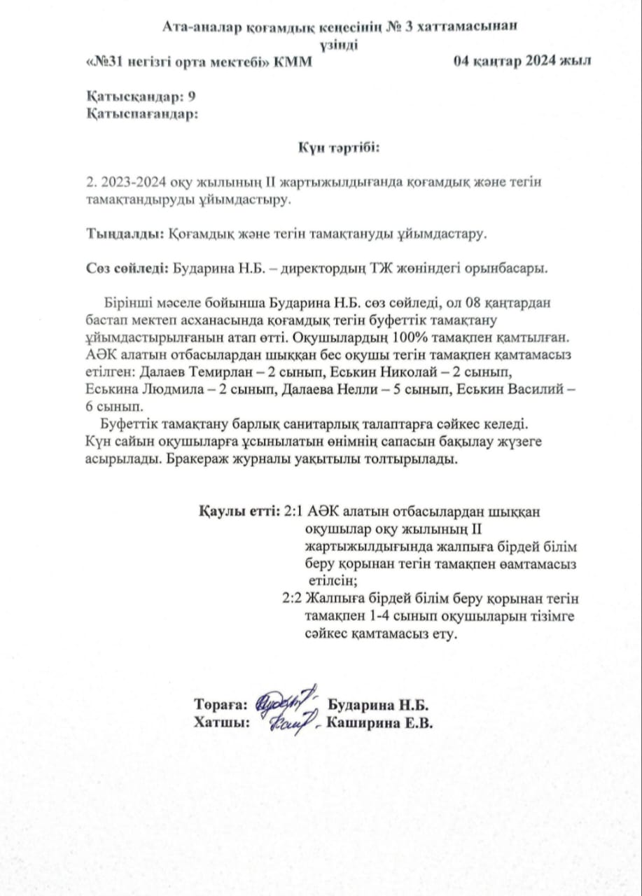 школьное питаниевыписка из протокола № 3 |