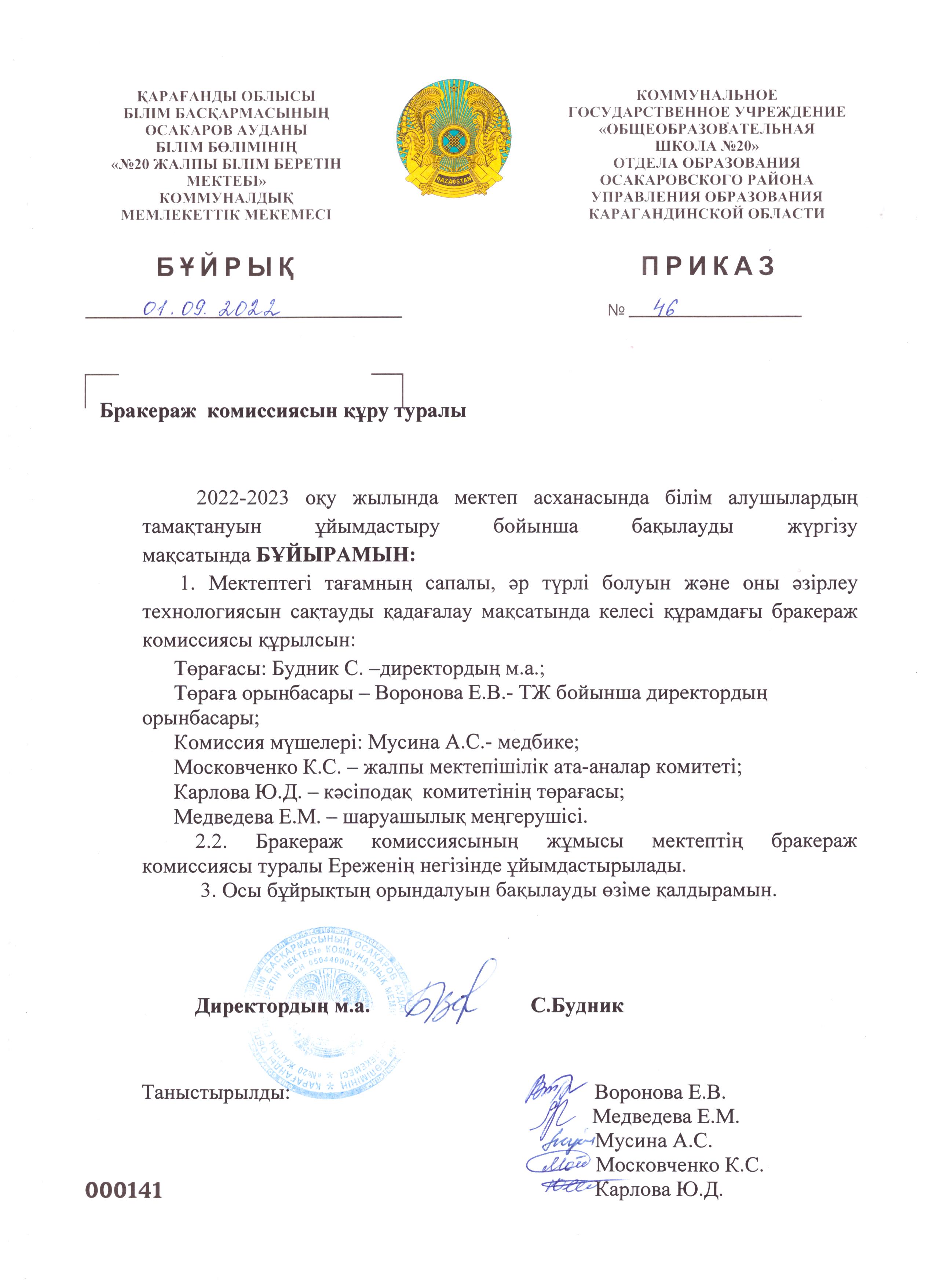 План бракеражной комиссии. |