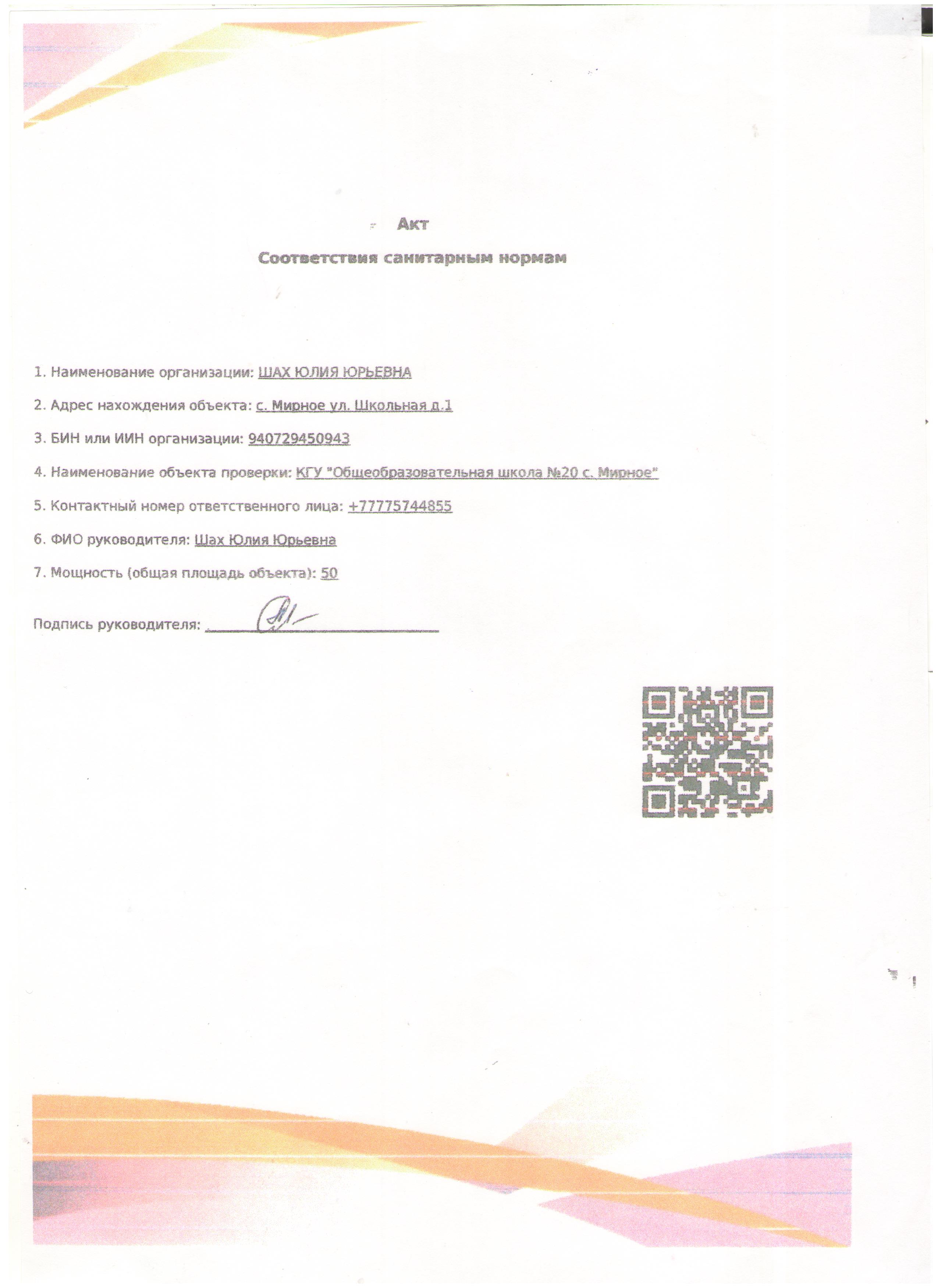 Акт СЭС. |