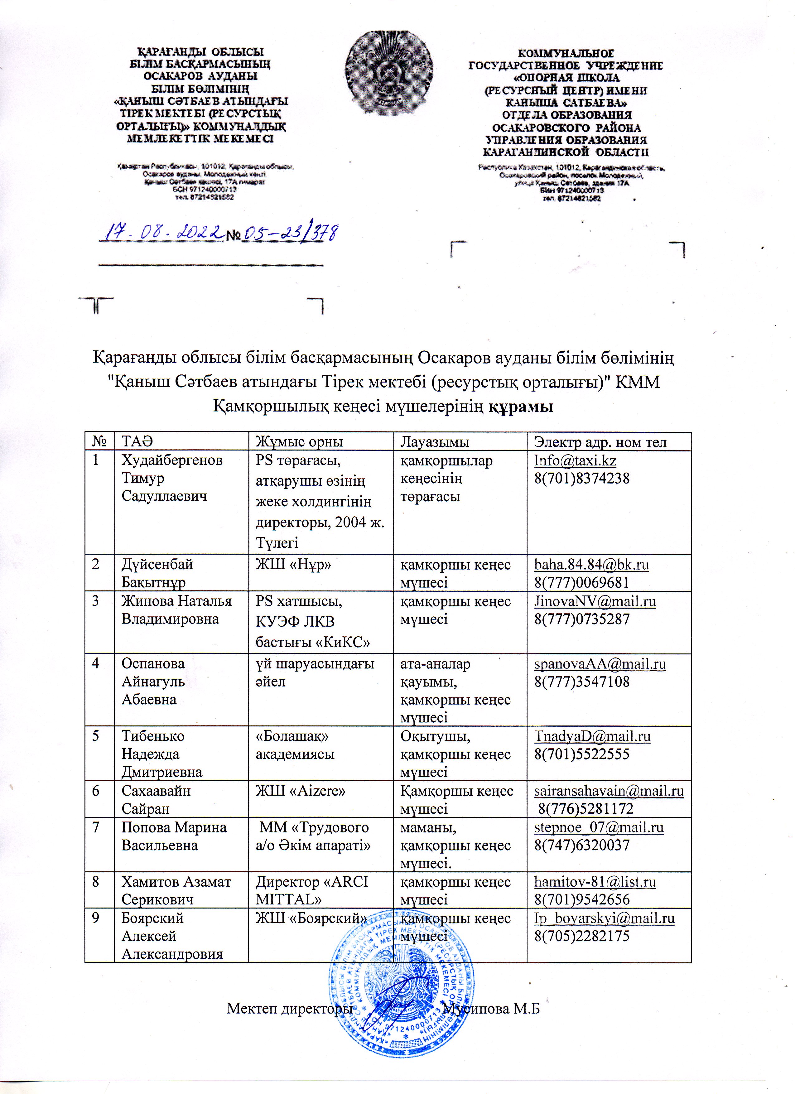 Организации> Қарағанды облысы білім басқармасының Осакаров ауданы білім бөлімінің «Қаныш Сәтбаев атындағы тірек мектебі (ресурстық орталығы)» коммуналдық мемлекеттік мекемесі