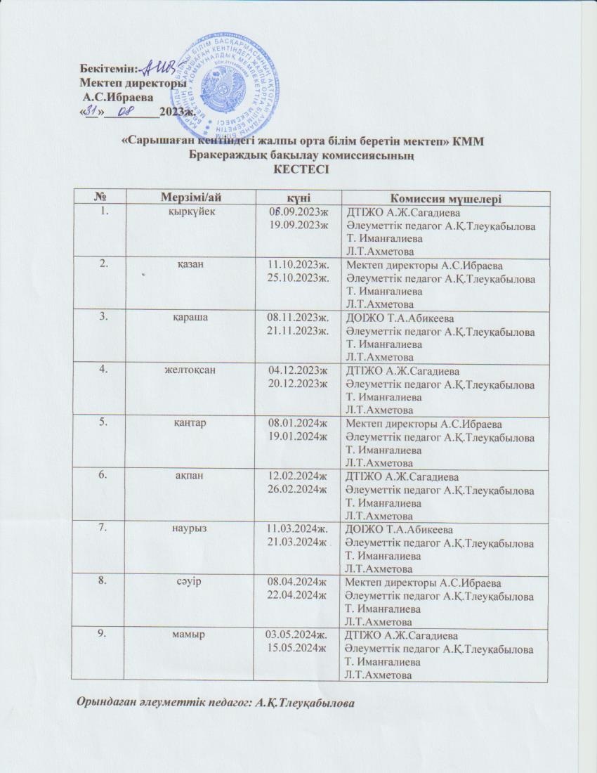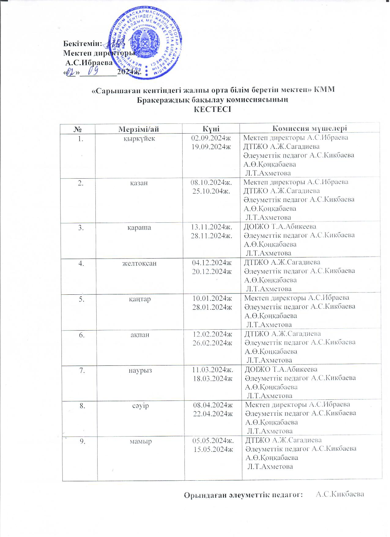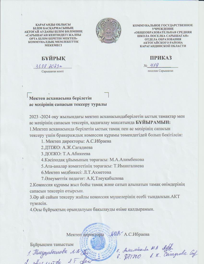 Мектепте буфеттік жүйедегі тамақтандыру жұмыстары ұйымдастырылған: тағам дайындау, ыстық тамақ әзірлеу, буфеттік зиянсыз өнімдер. Мектеп асханадағы тамақтануды ұйымдастыру кезінде Қазақстан Республикасы Бас мемлекеттік санитарлық дәрігерінің 2020 жылғы 25 желтоқсандағы №67 қаулысымен бекітілген мектеп асханалары қызметінің тәртібіне қойылатын талаптары қатаң сақталынуда. Оқу жылының басында ата-аналар қоғамы мен мектеп әкімшілігі қатарынан бракераждық комиссия құрылды.
