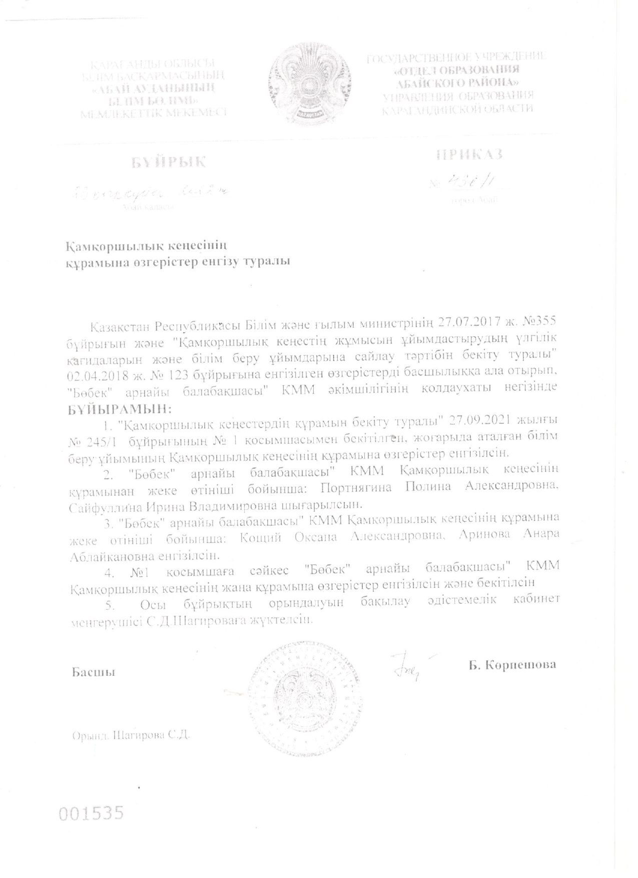 КГУ "Специальный ясли-сад "Бөбек" отдела образования Абайского района управления образования Карагандинской области