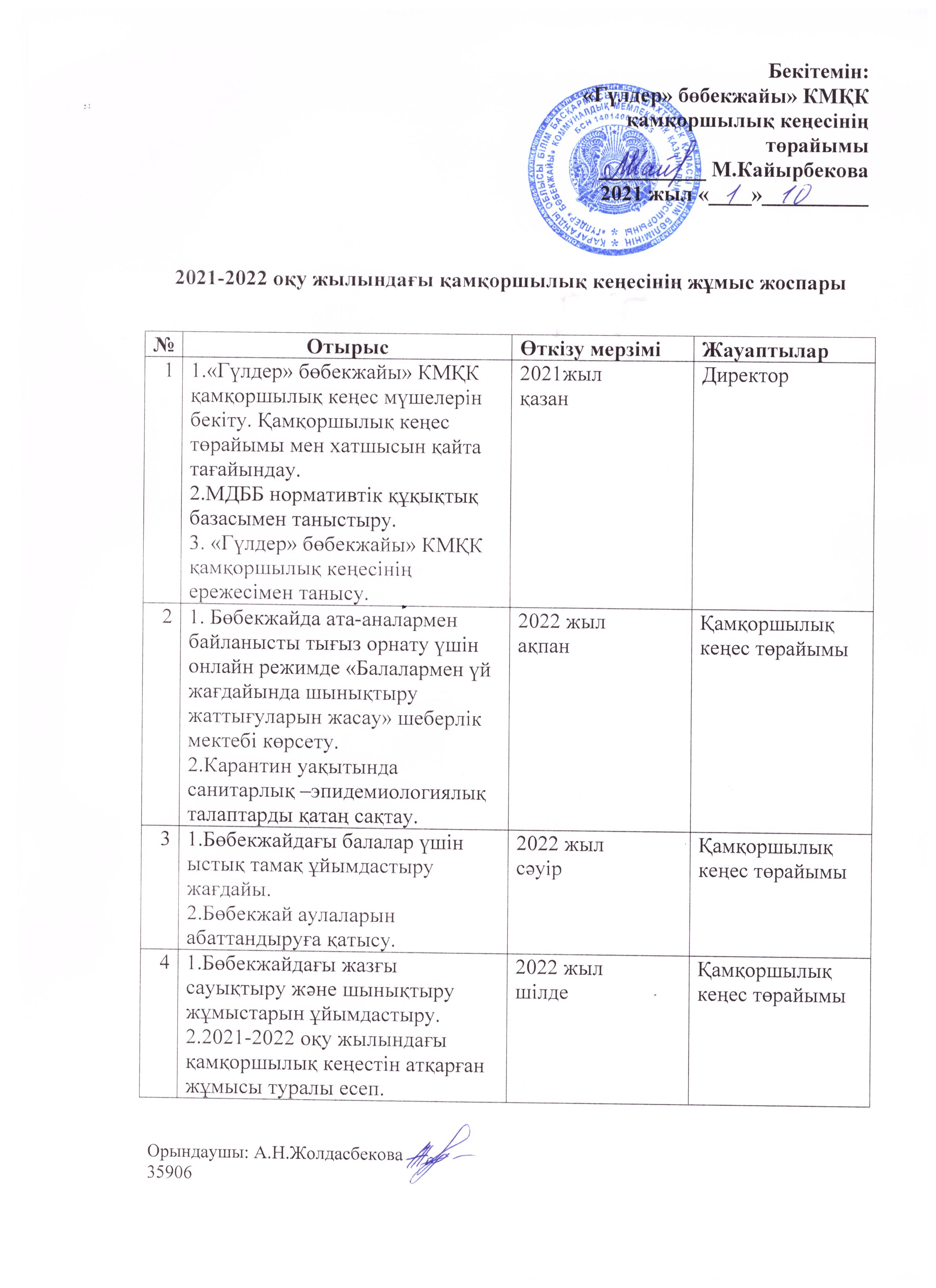 2021-2022 жылдардағы қамқоршылық кеңестің жұмыс жоспарыЖұмыс жоспары |