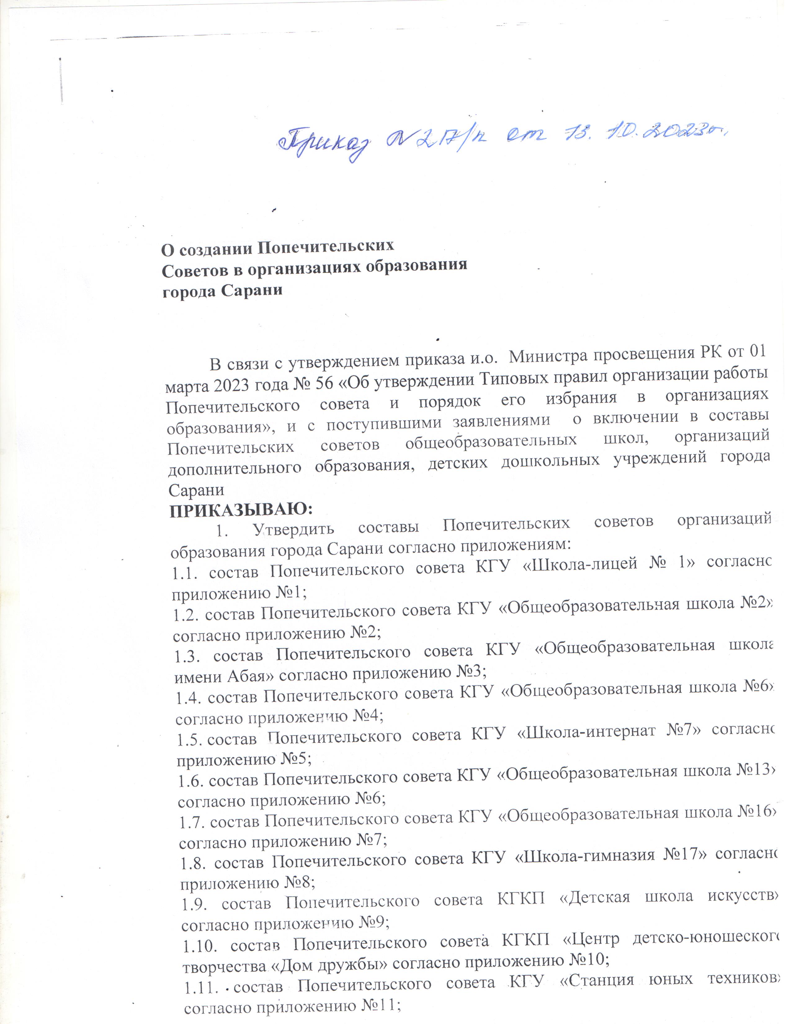 приказ и список ПС КГКП я/с "Сәуле", |