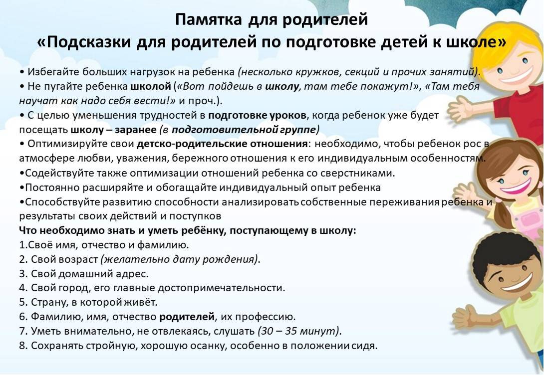 Памятка для родителей "Подсказки для родителей по подготовке детей к школе". |