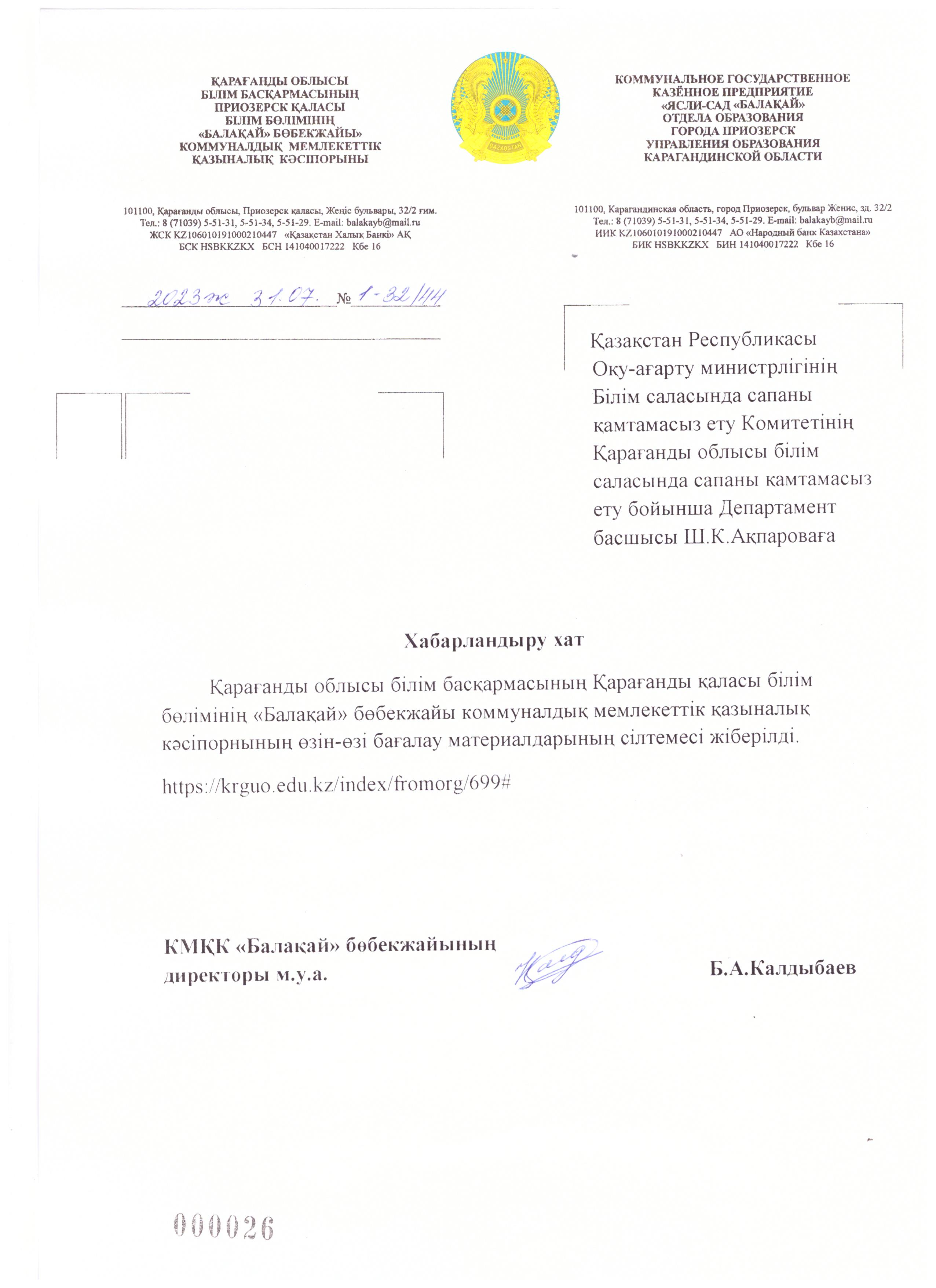 Организации> Қарағанды облысы білім басқармасының Приозерск қаласы білім бөлімінің "Балақай" бөбекжайы КМҚК